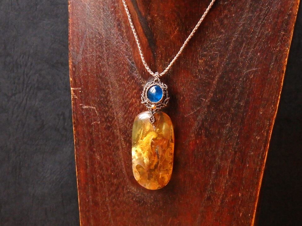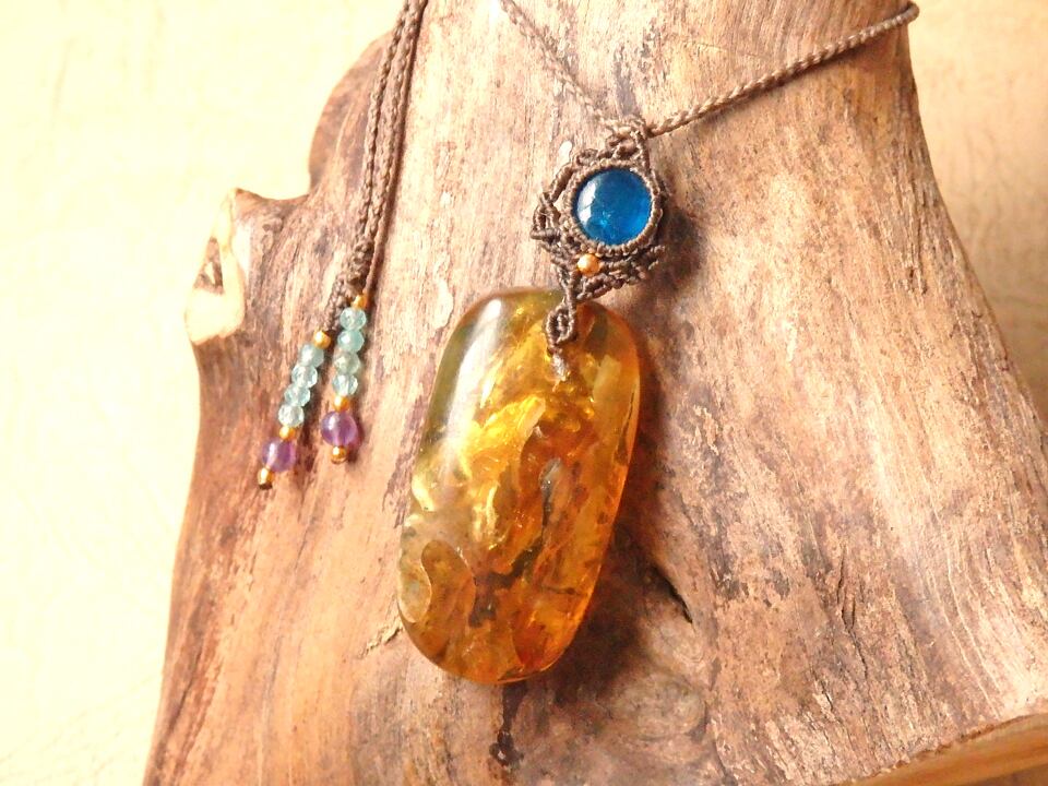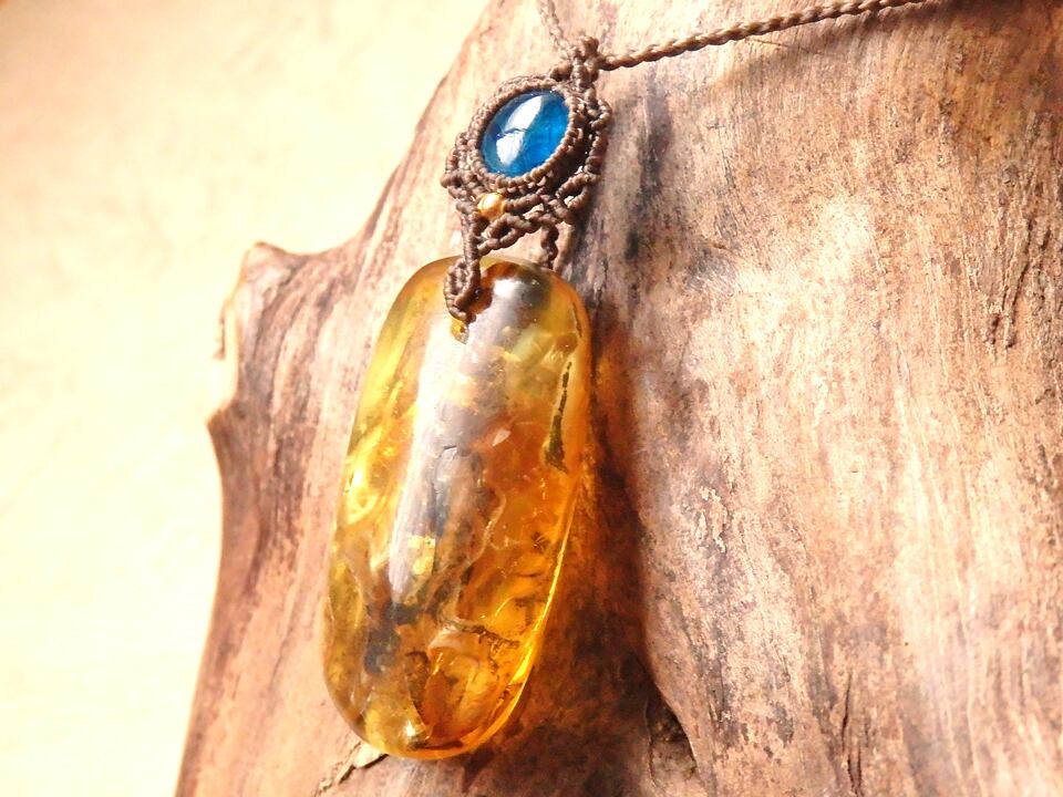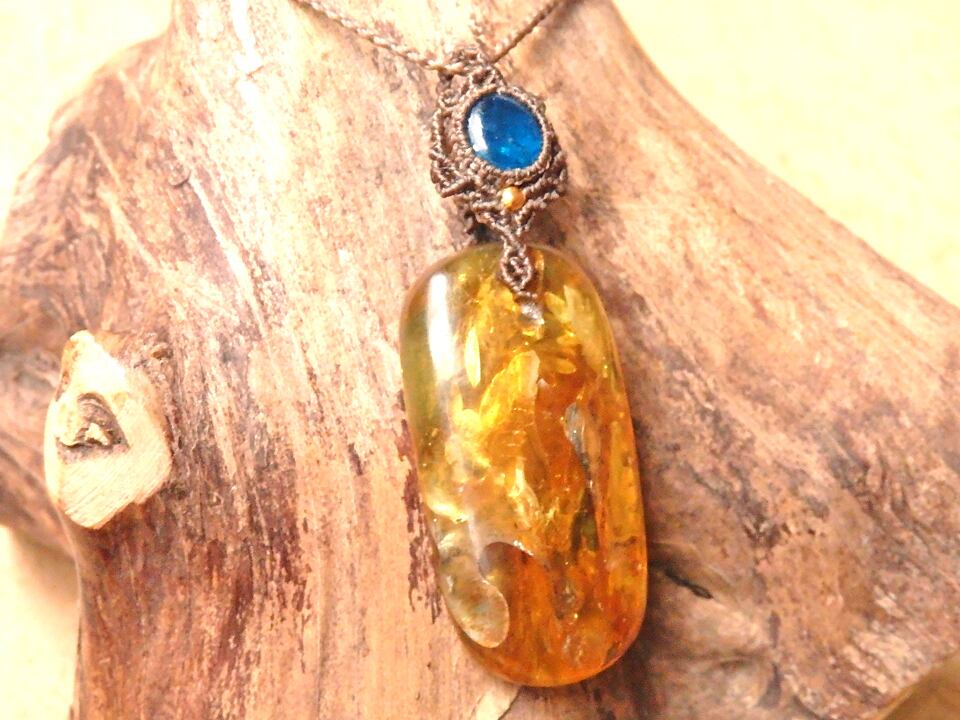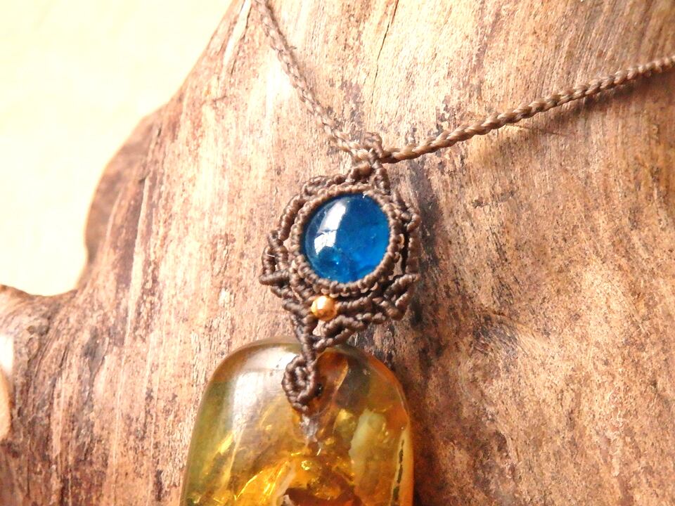 アンバー(琥珀) & アパタイト マクラメペンダント