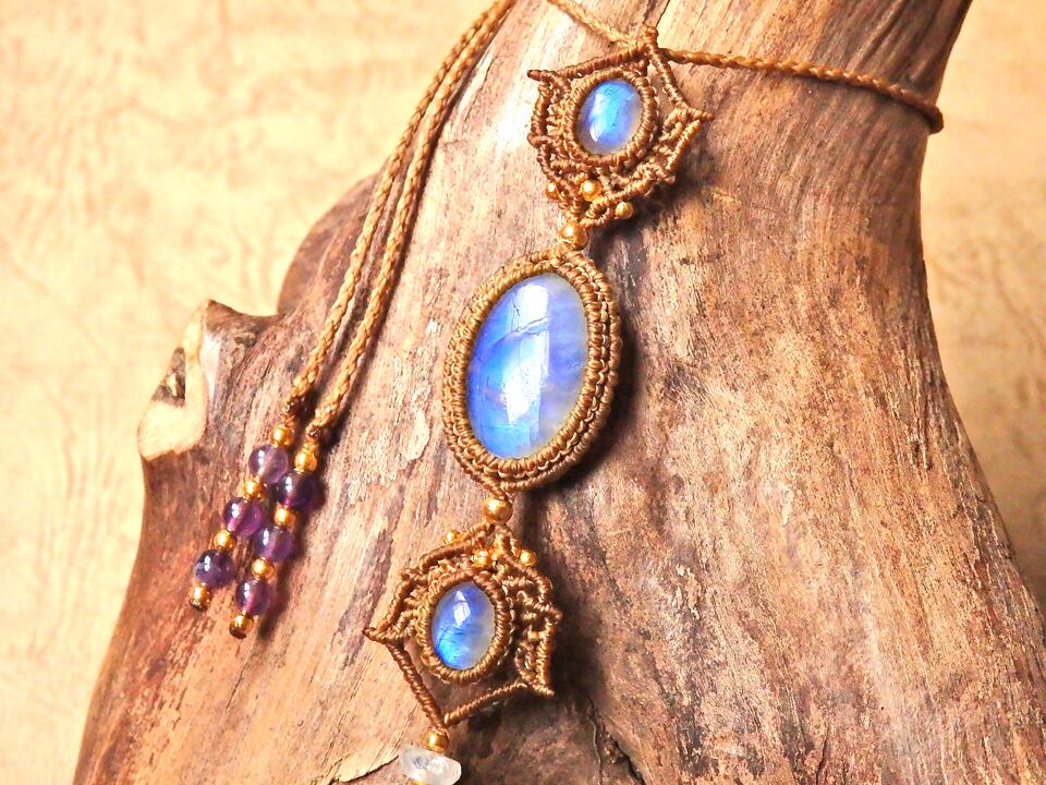 マクラメ アクセサリー ジュエリー ペンダント ネックレス ブレスレット バングル ピアス リング 指輪 イヤリング 天然石 誕生石 宝石 原石 結晶 パワーストーン エスニック ボヘミアン ナチュラル 虹 レインボー 空 宇宙 惑星 星 太陽 月 植物 オーガニック 自然派 うさと スピリチュアル ヘンプ 麻 お洒落 オシャレ ヨガ チャクラ 希少石 レアストーン