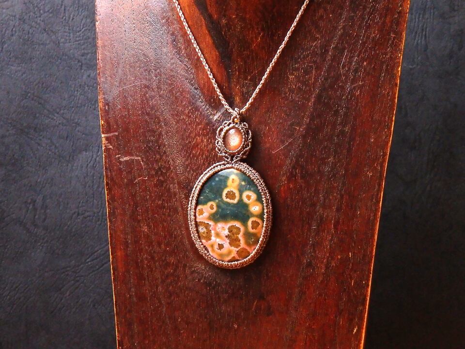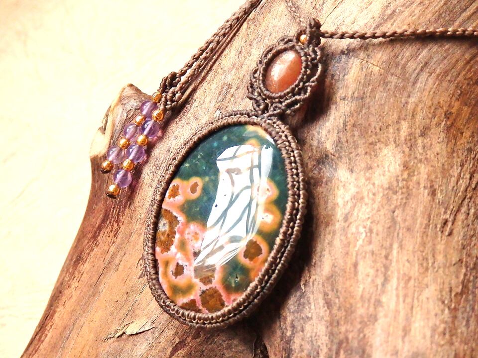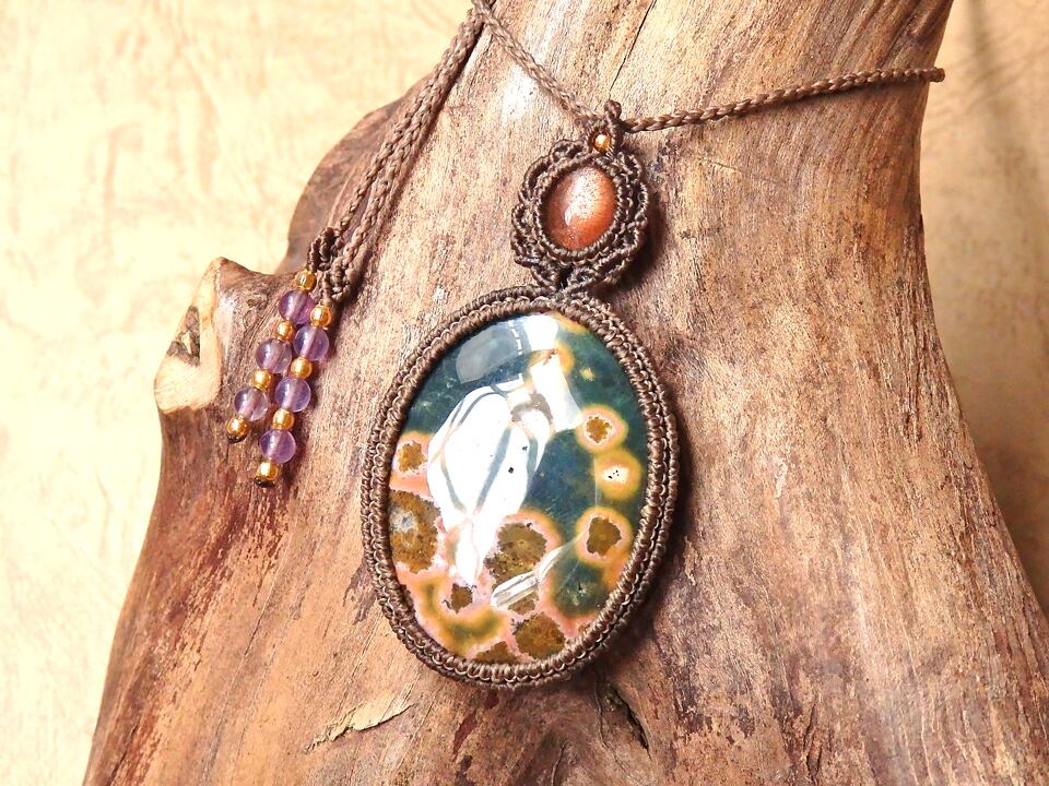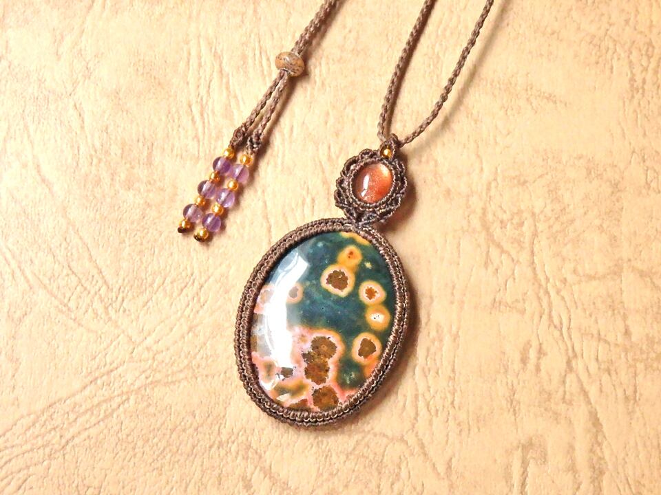 オーシャンジャスパー & サンストーン マクラメペンダント