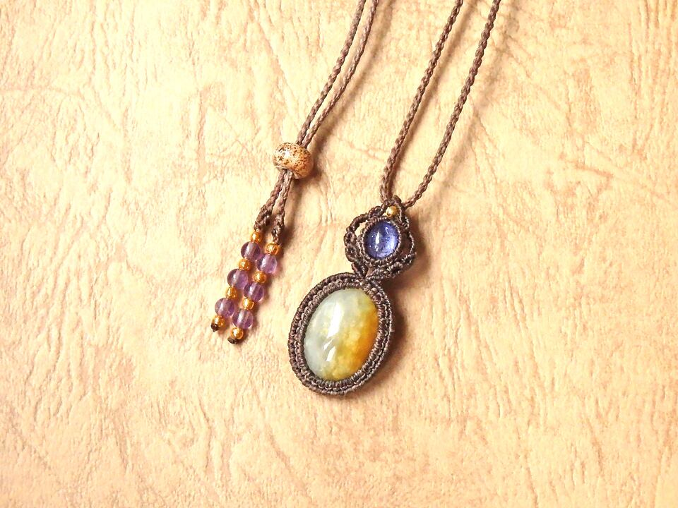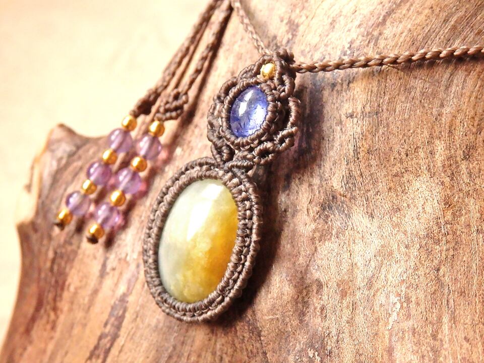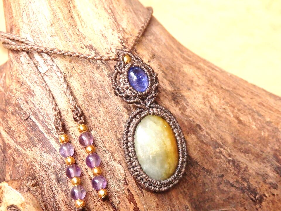 ジェダイト(本翡翠・翡翠硬玉) × タンザナイト マクラメペンダント