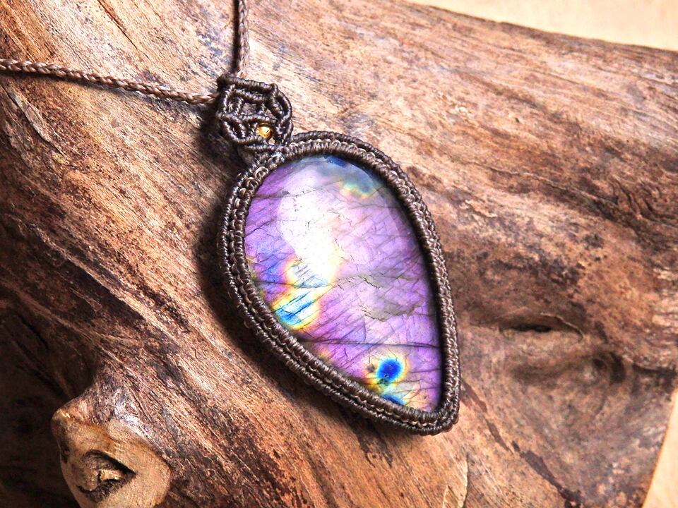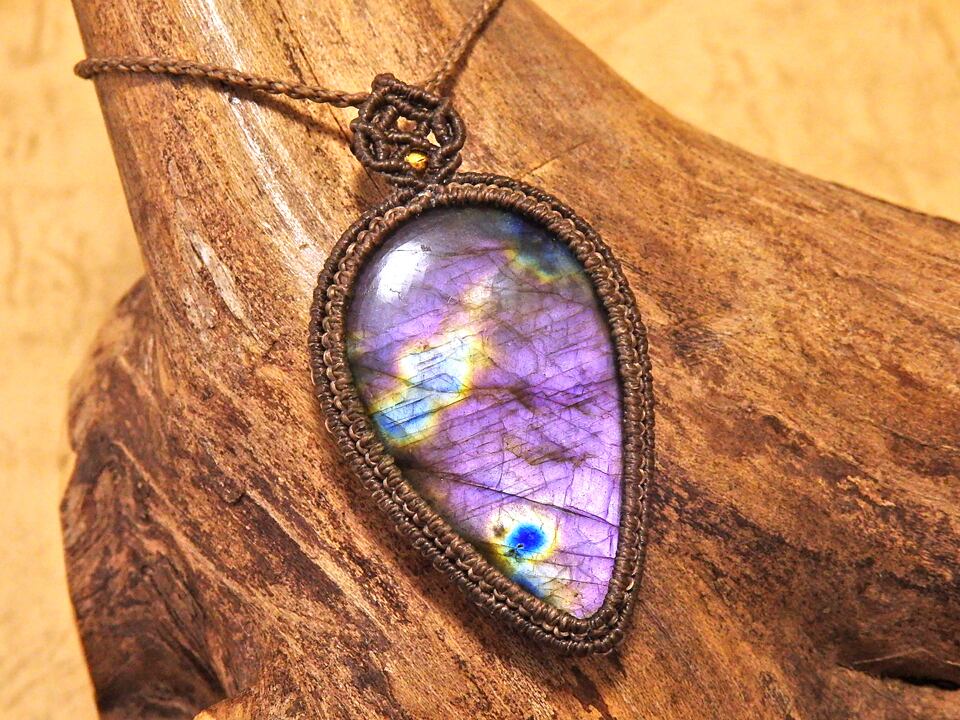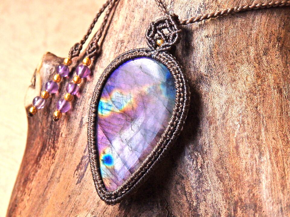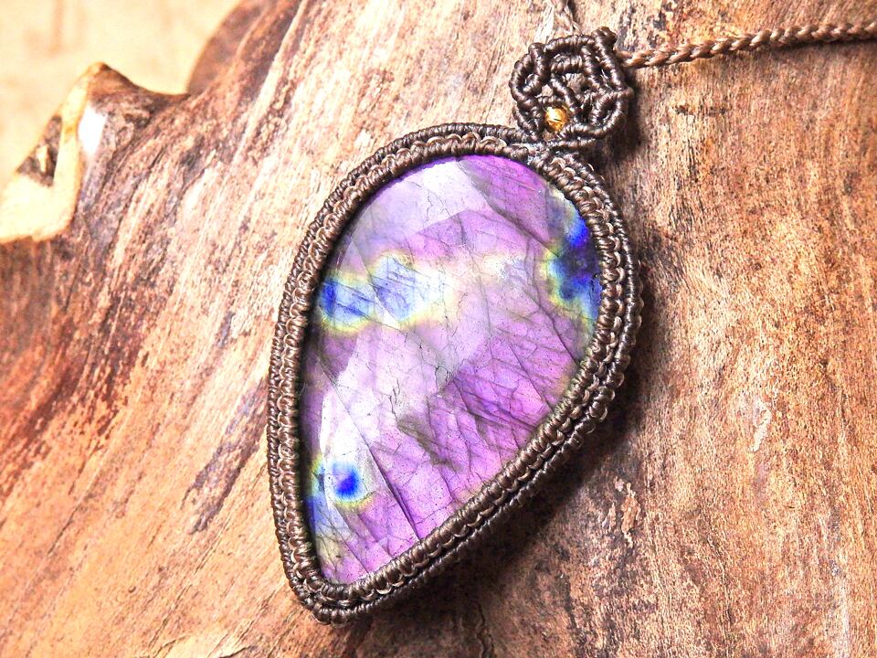 パープルラブラドライト マクラメペンダント