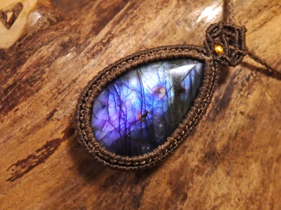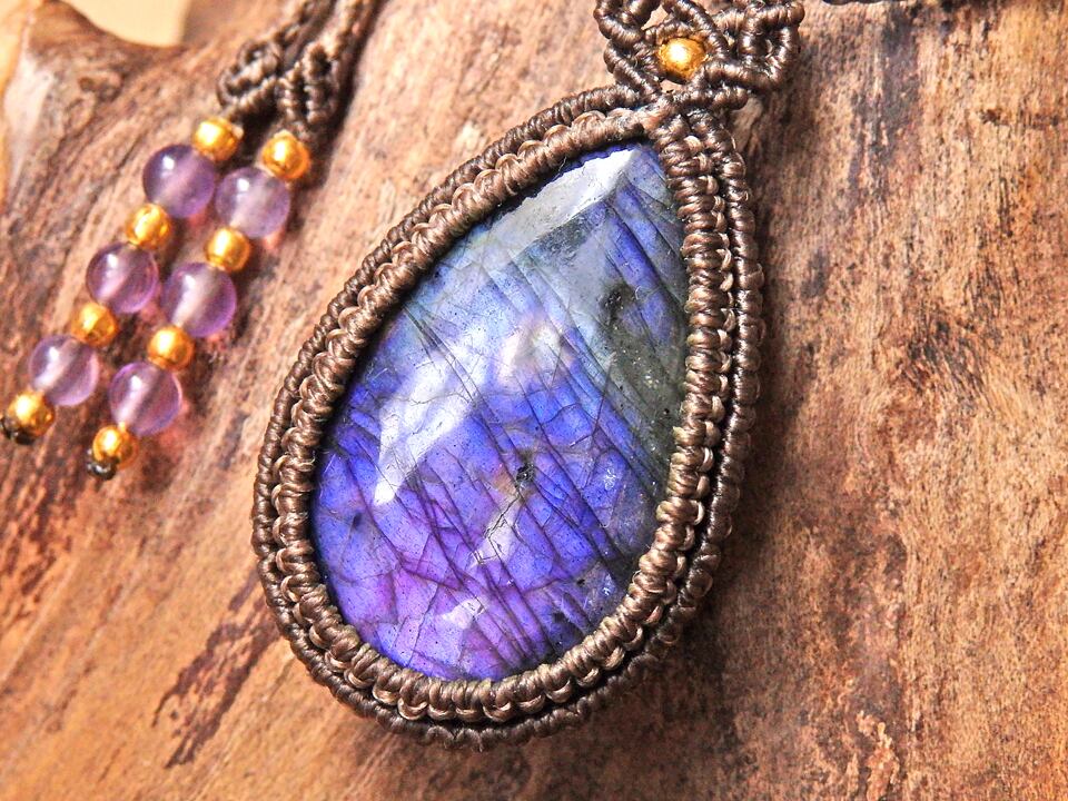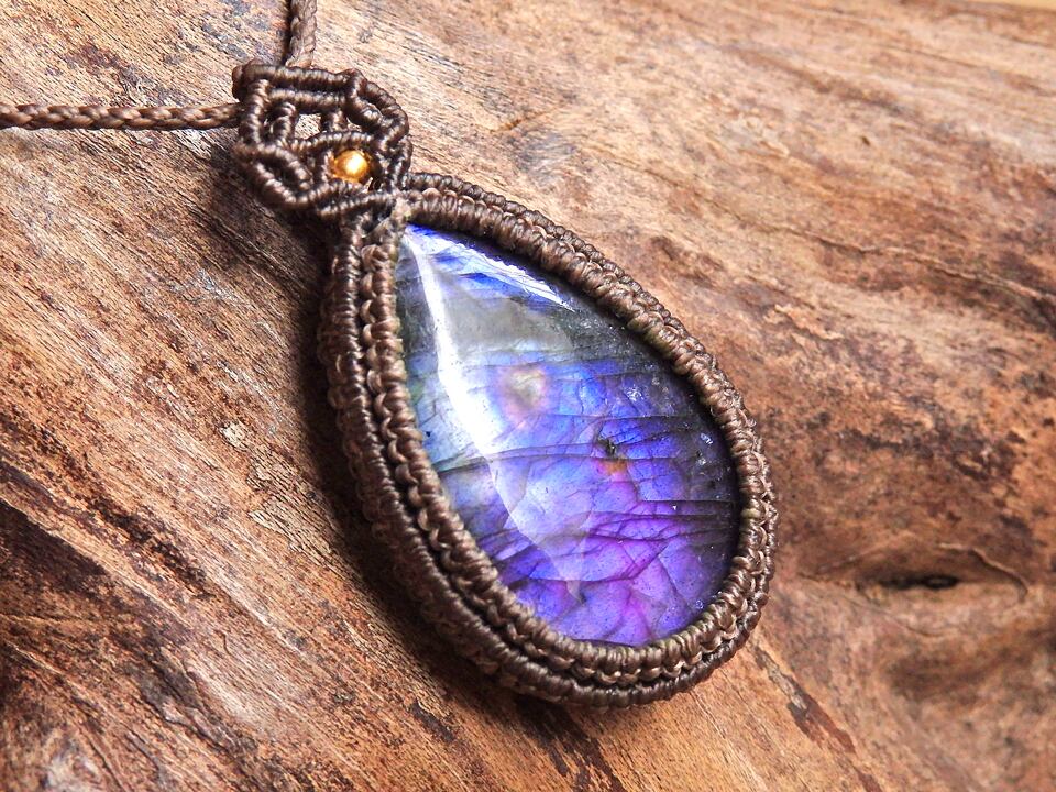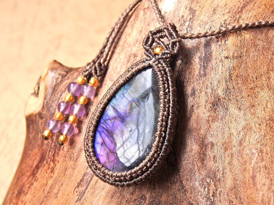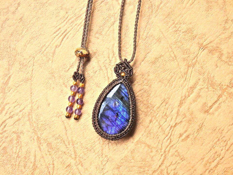 マルチカラーラブラドライト マクラメペンダント