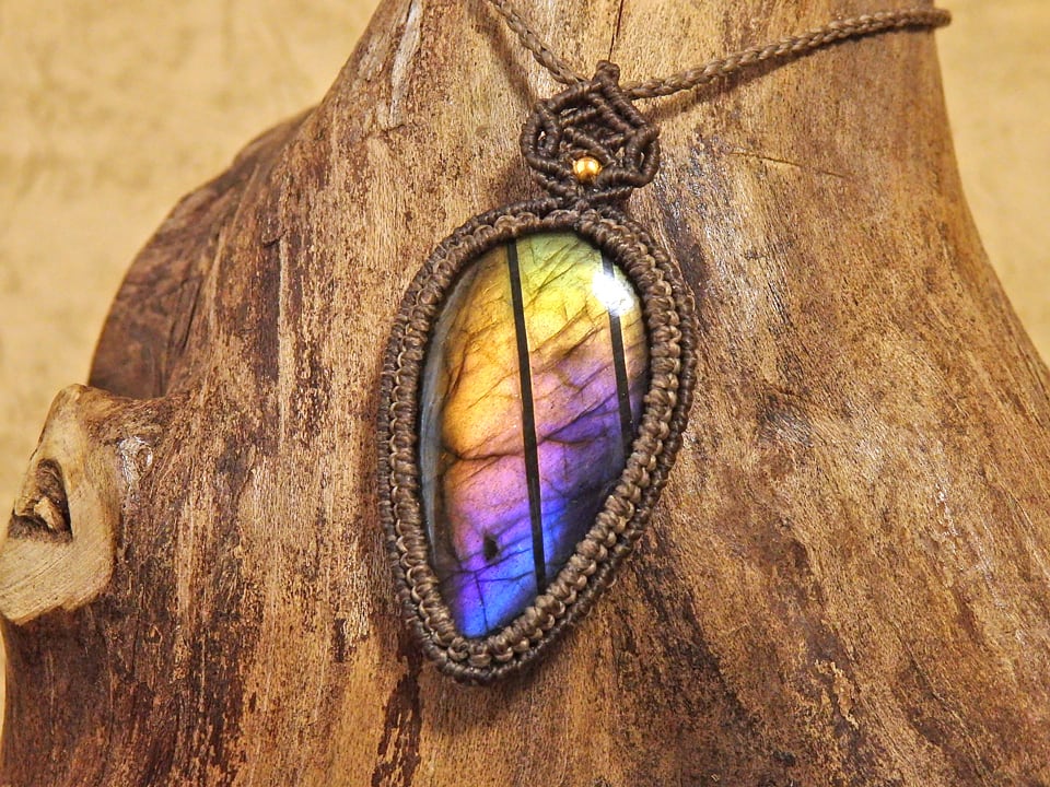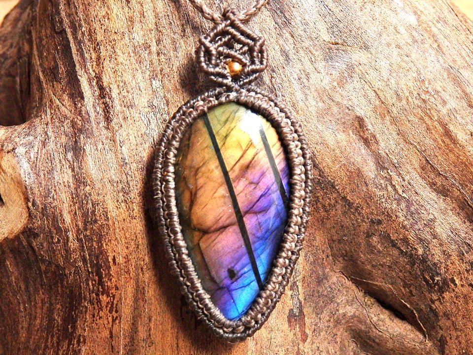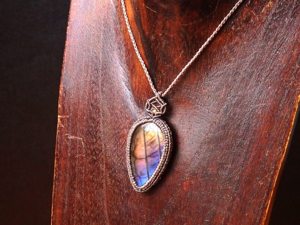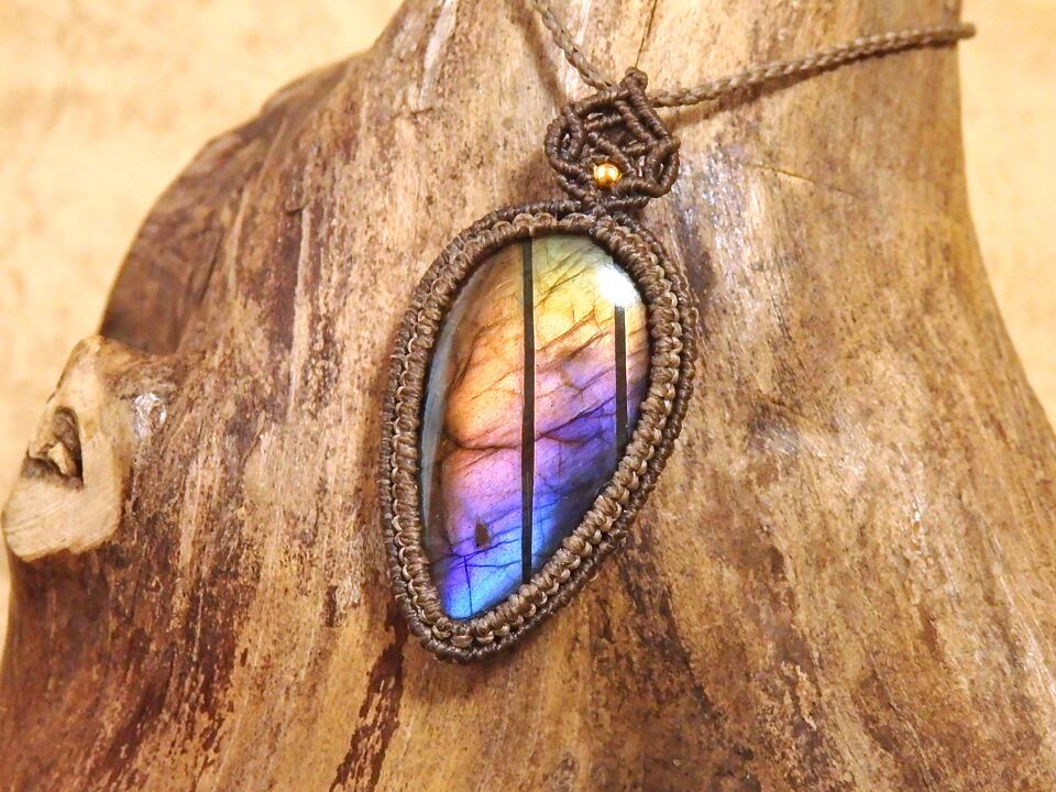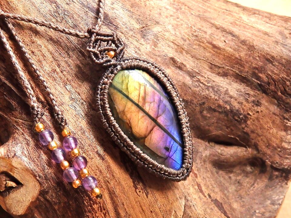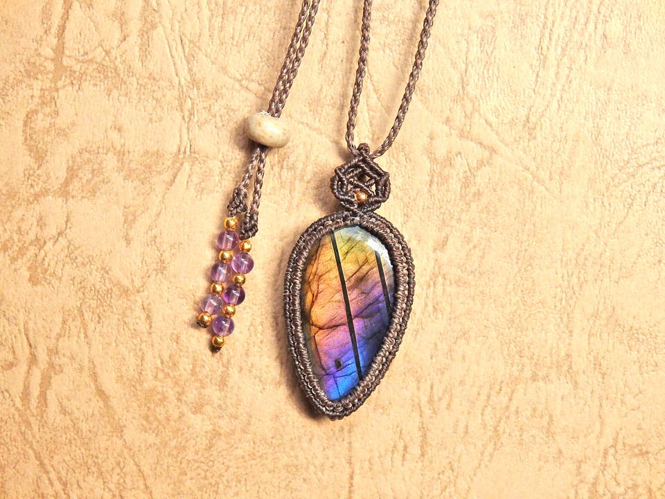 マルチカラーラブラドライト マクラメペンダント