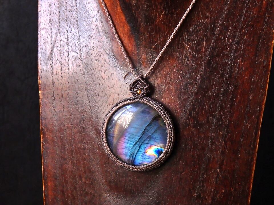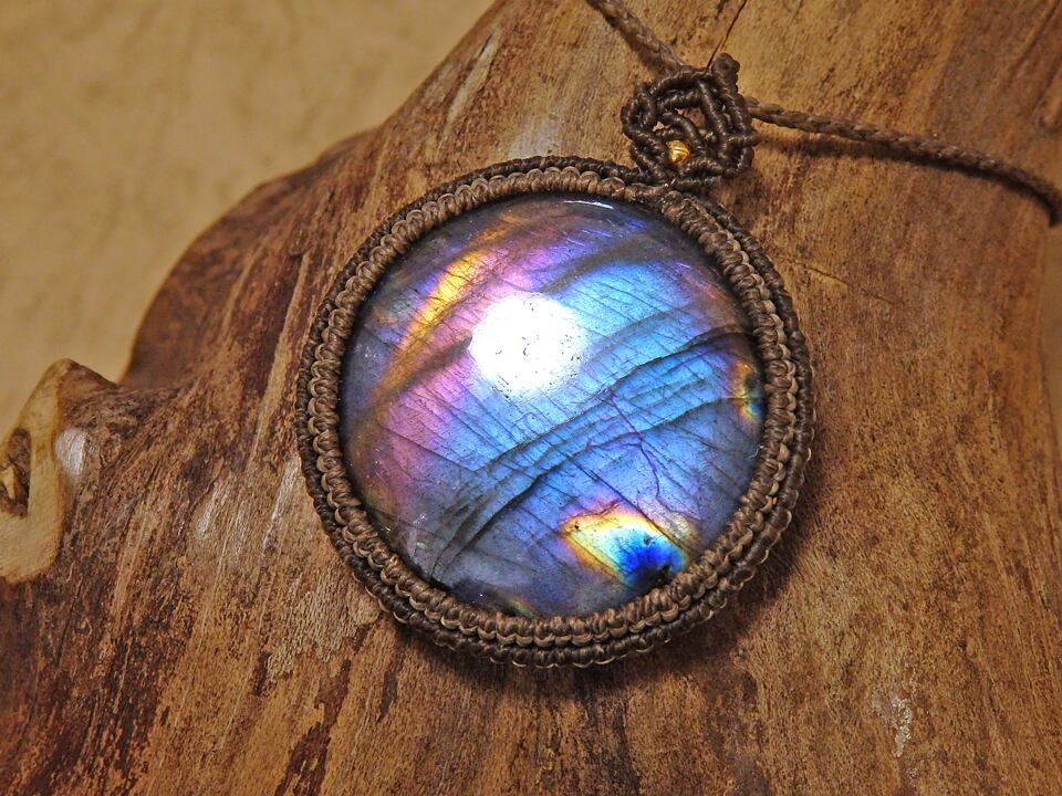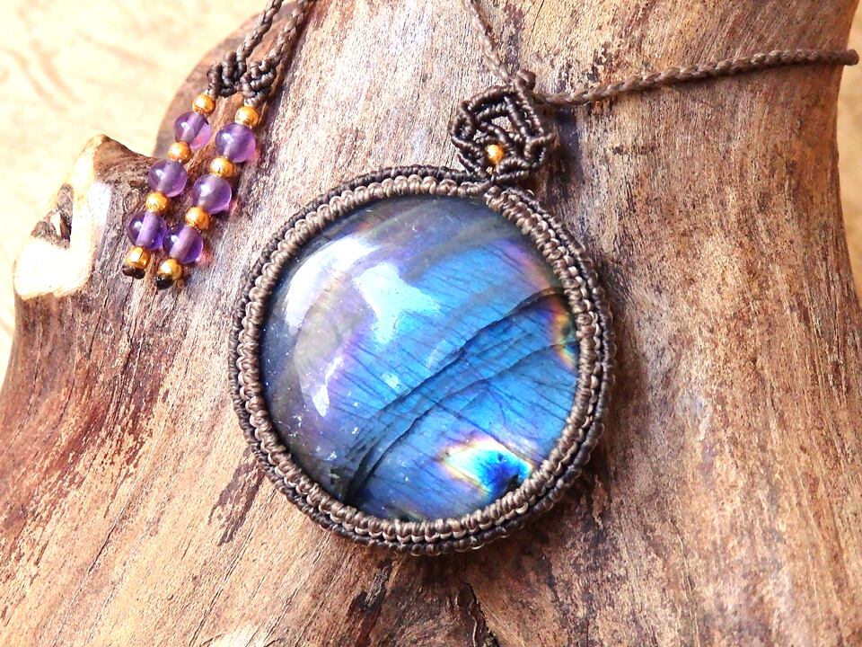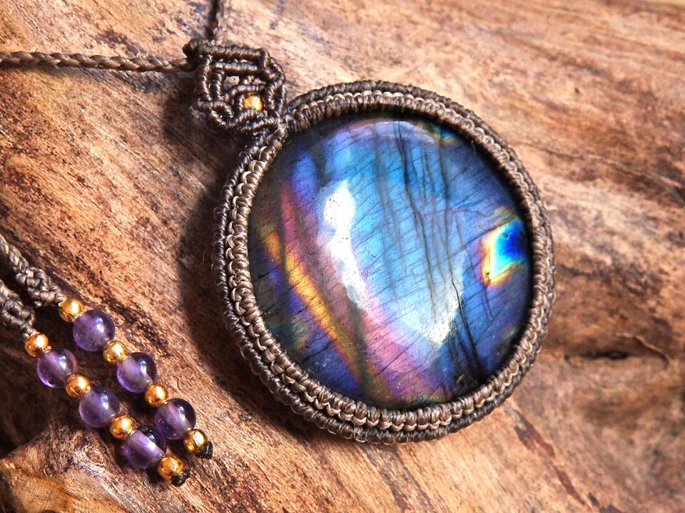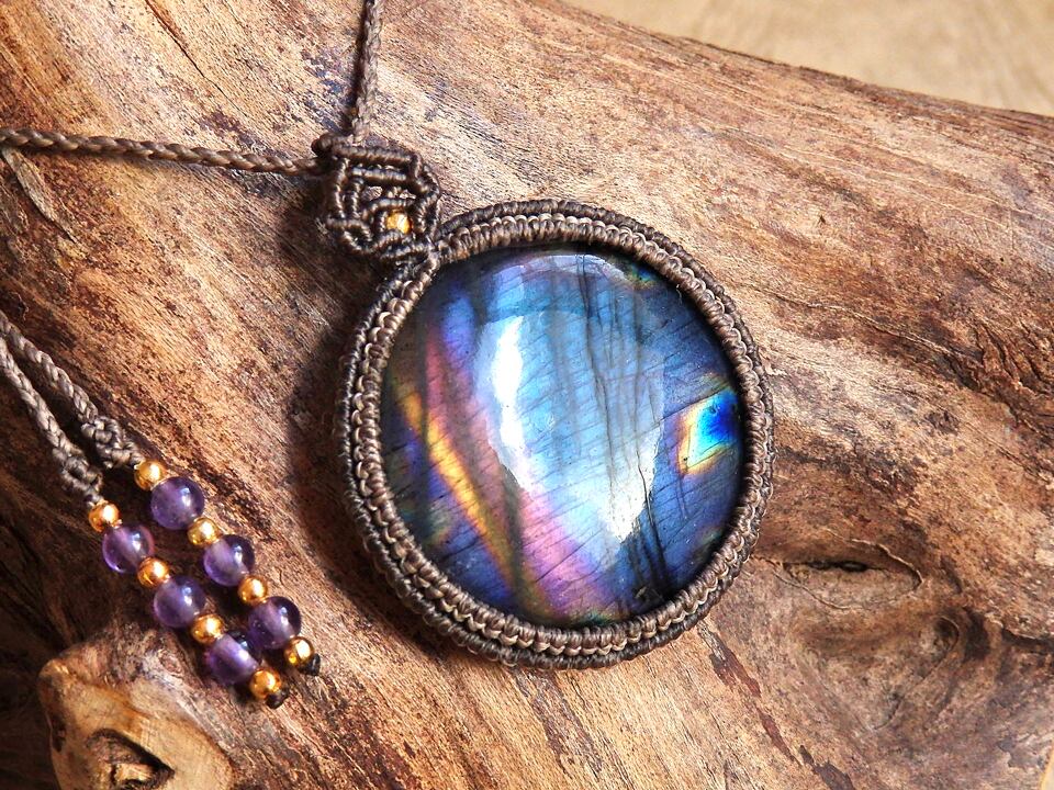 マルチカラーラブラドライト マクラメペンダント