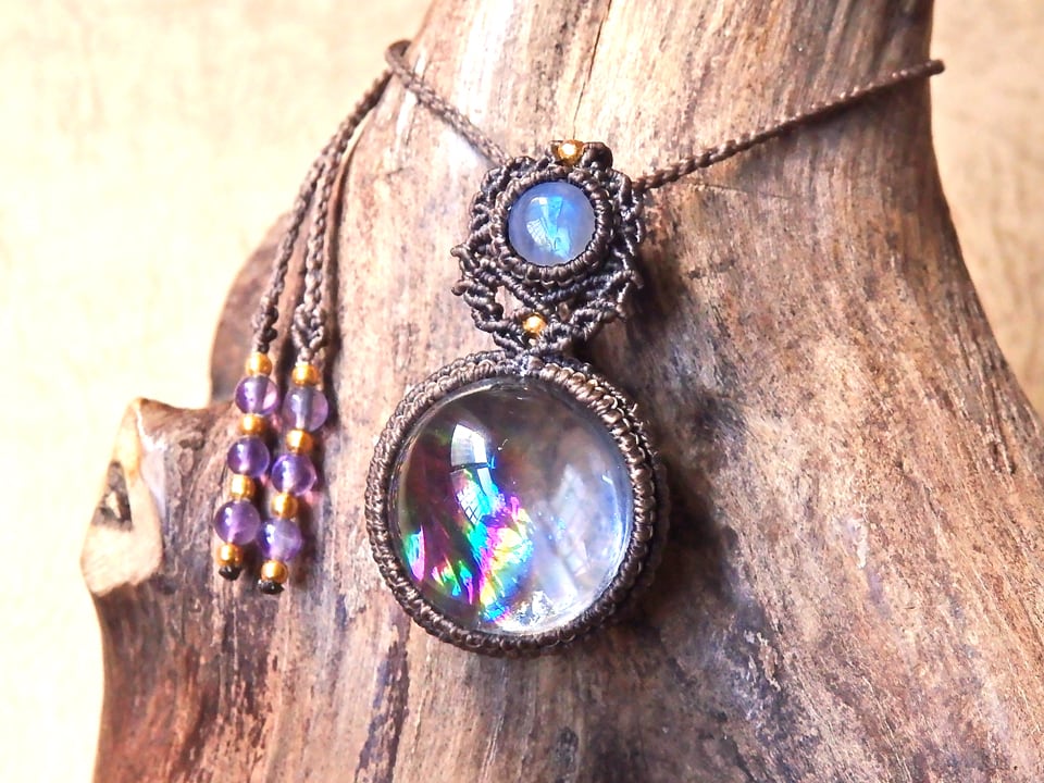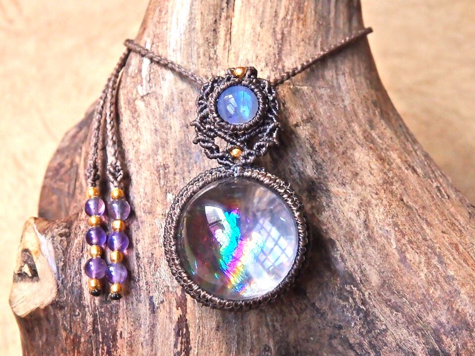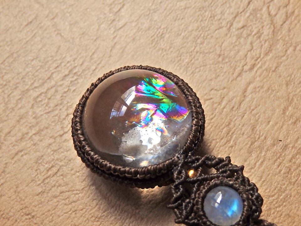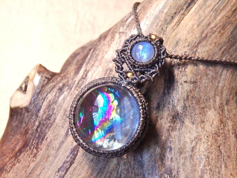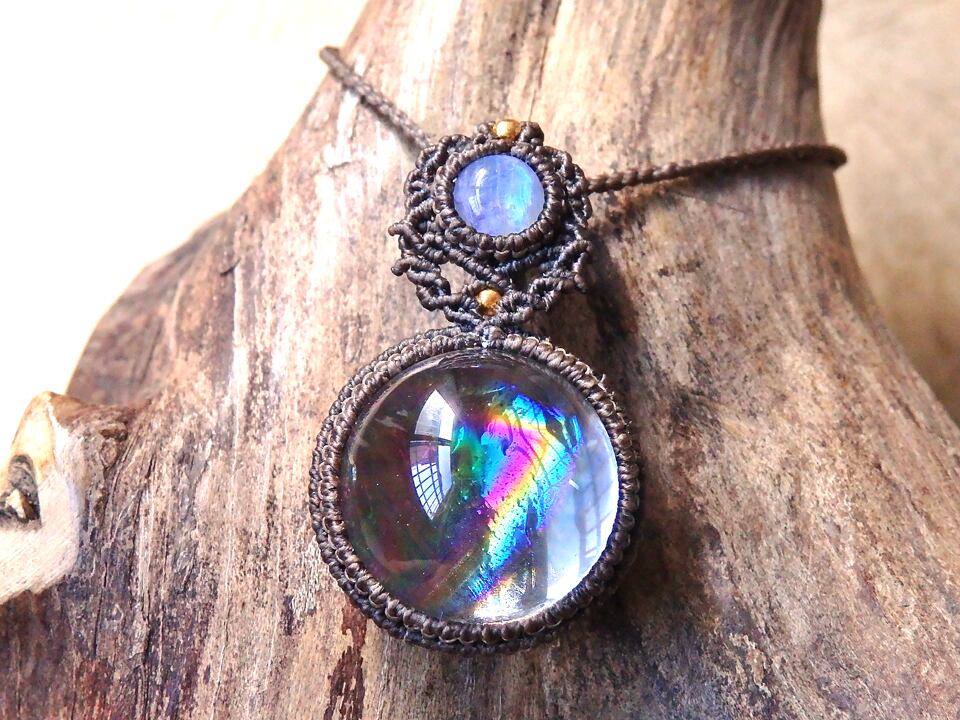 アイリスクォーツ(虹入り水晶・レインボークォーツ) × ムーンストーン マクラメペンダント