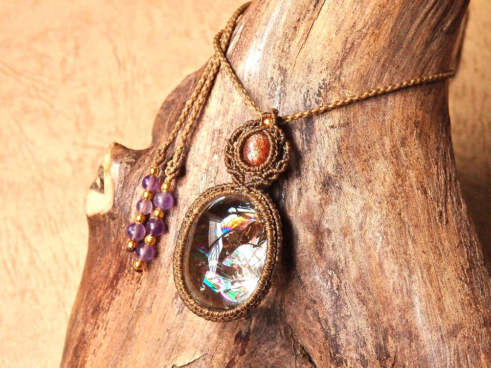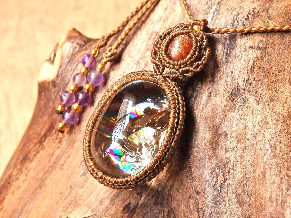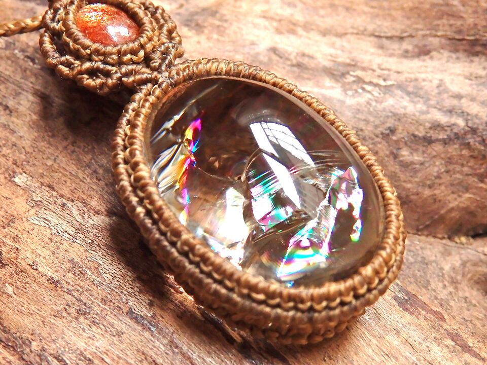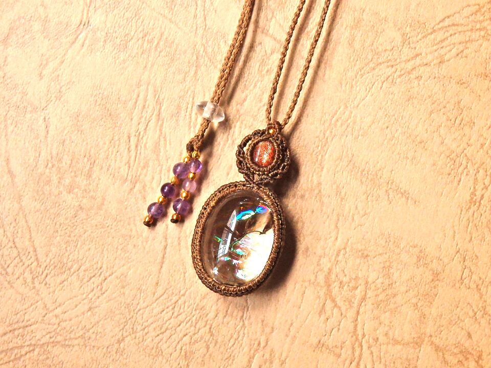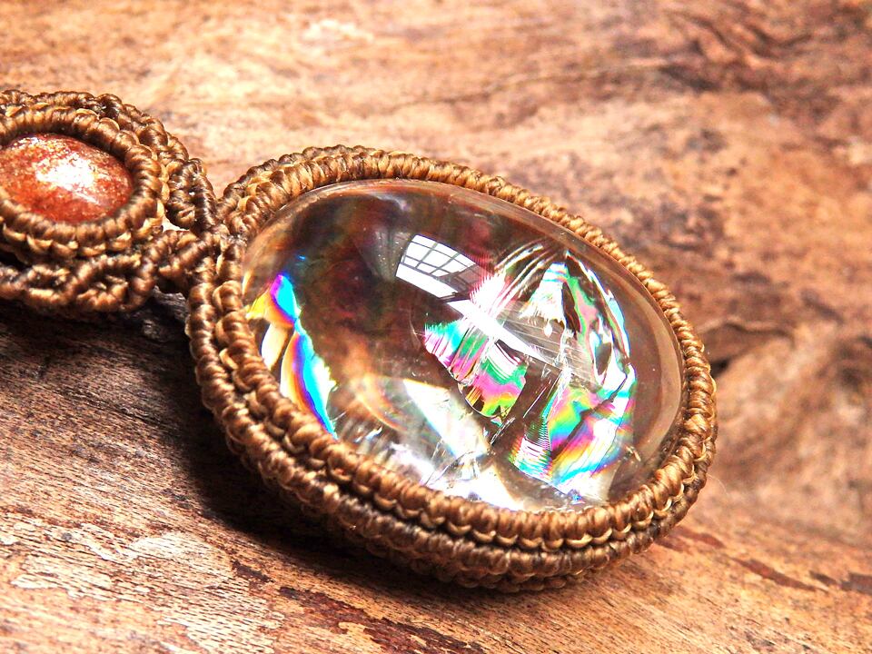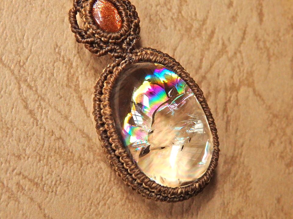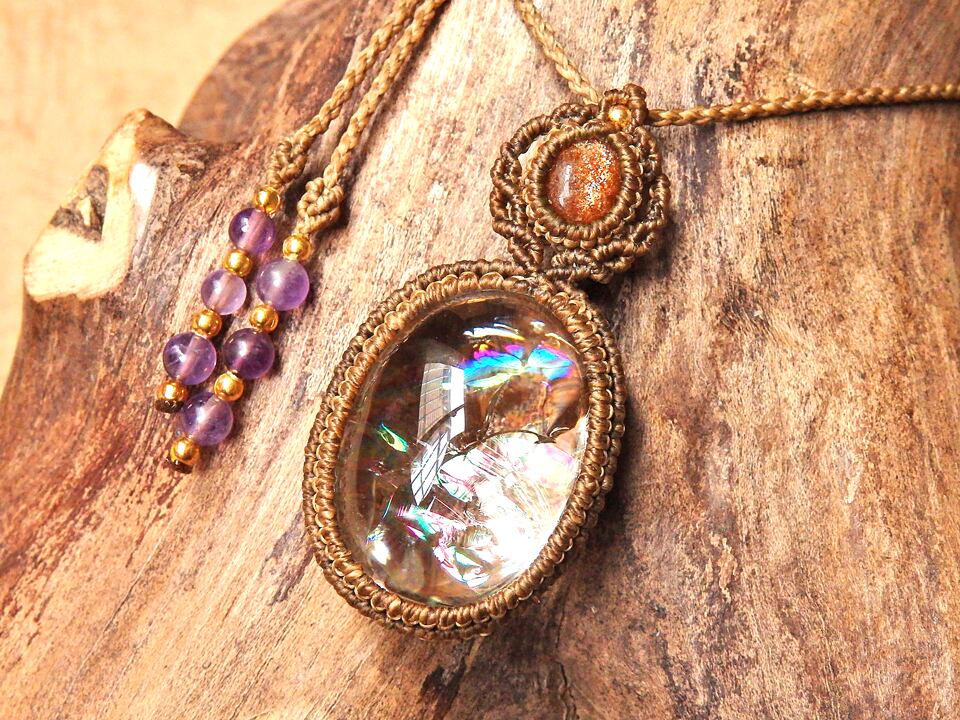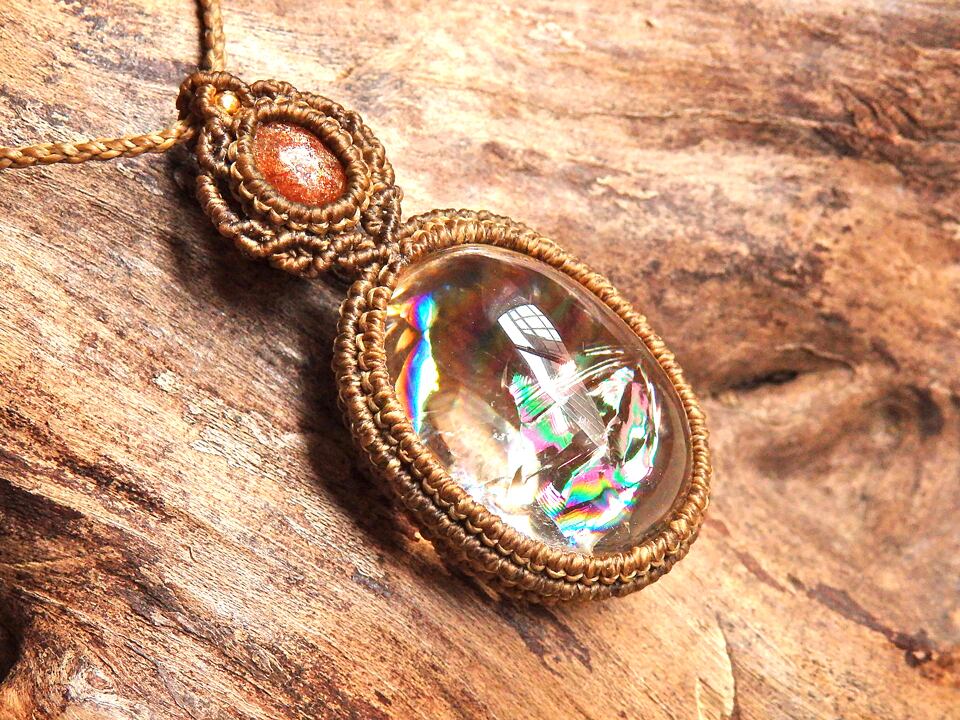 アイリスクォーツ(虹入り水晶・レインボークォーツ) × サンストーン マクラメペンダント