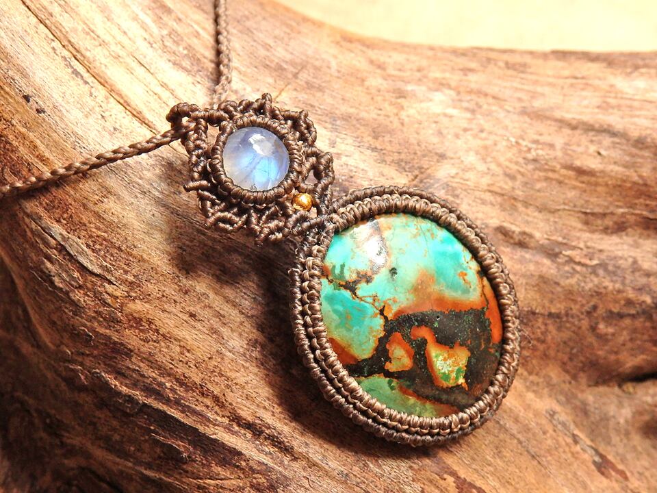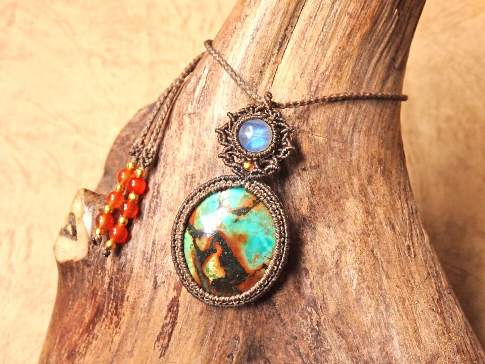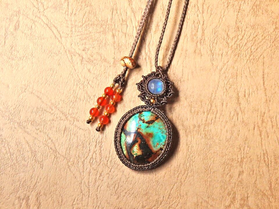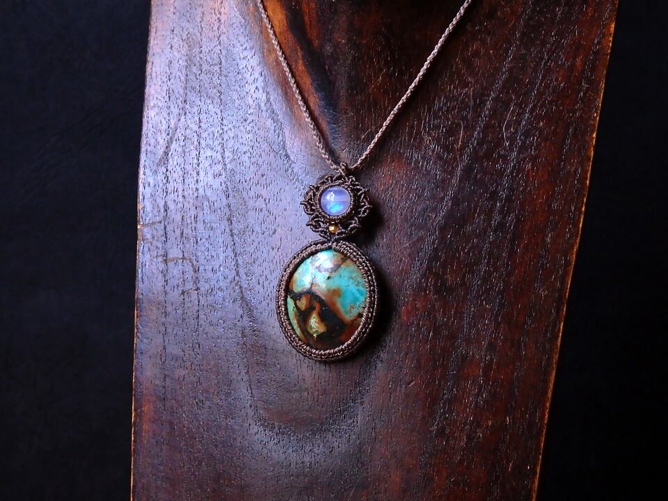 チベタンターコイズ × ムーンストーン マクラメペンダント